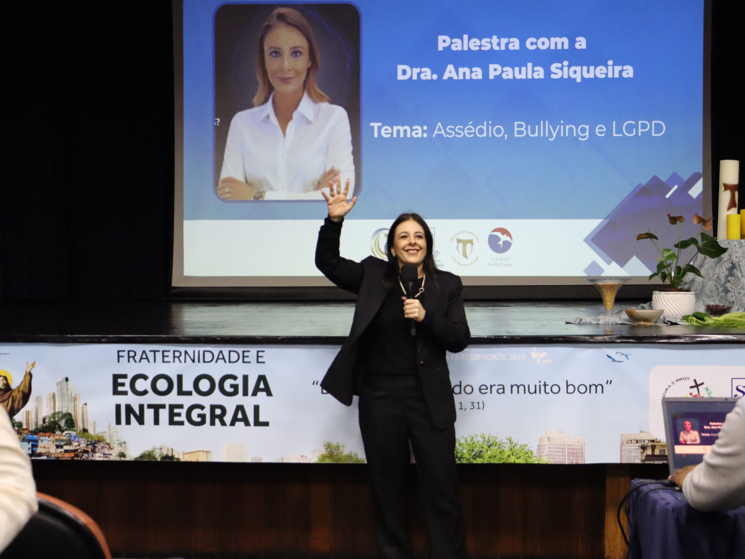 Tivemos a honra de receber a Dra. Ana Paula Siqueira, que abordou questões essenciais como Assédio, Bullying e LGPD, e o educador Ricardo Mariz, com a palestra Educação Católica: ir além do provável para construir o futuro sonhado.
